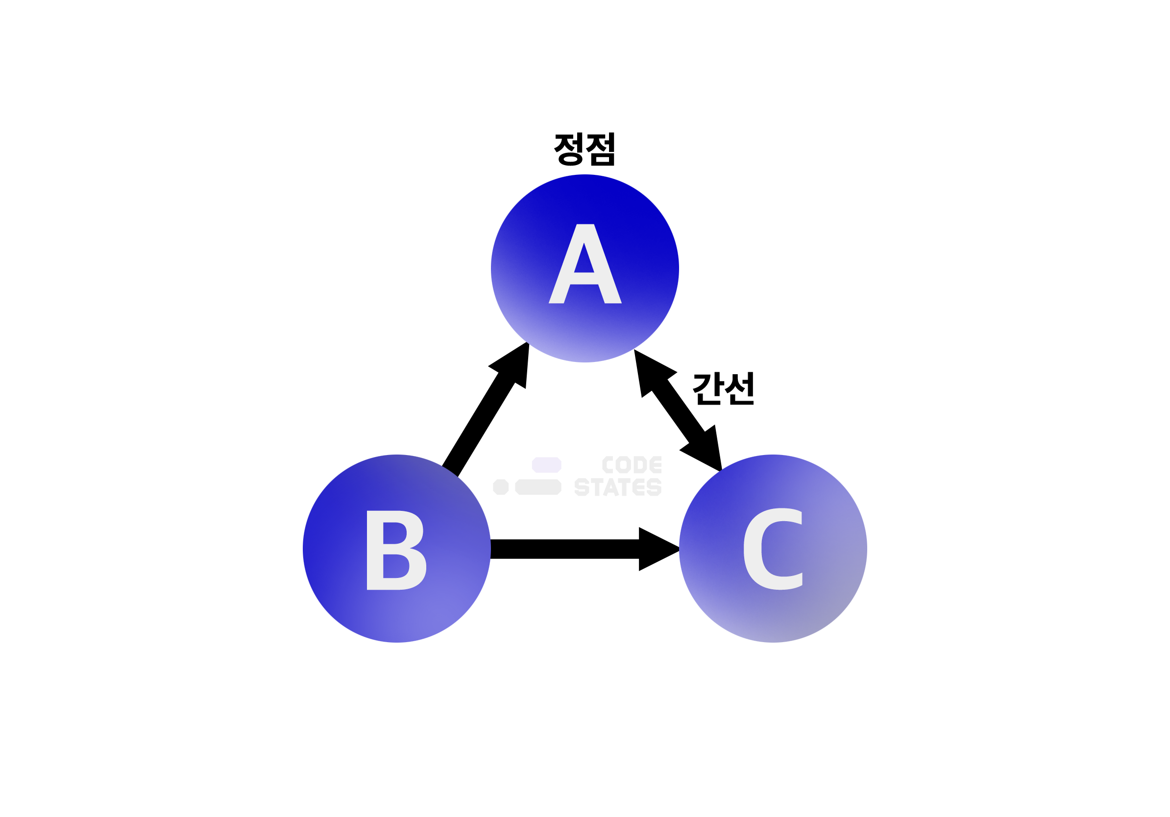 - 하나의 점을 그래프에서는 정점(vertex)이라고 표현하고, 하나의 선은 간선(edge)이라고 한다.