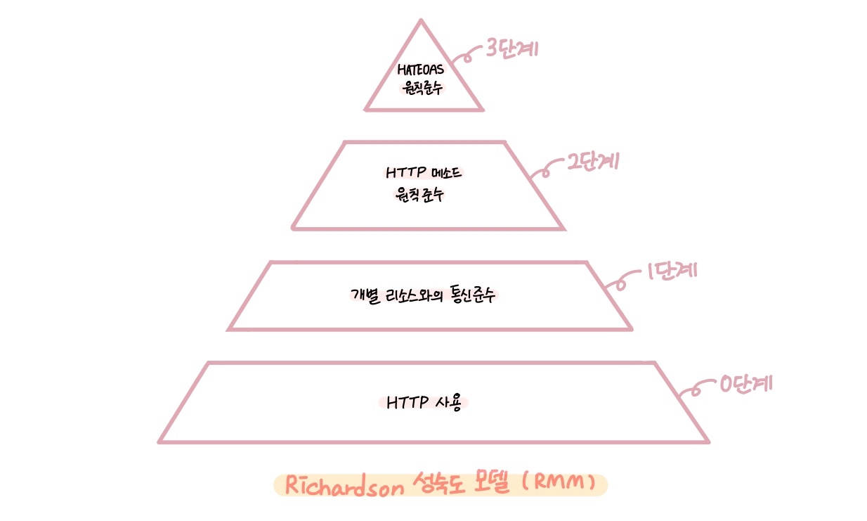 로이 필딩이 논문에서 제시한 REST 방법론을 보다 더 실용적으로 적용하기 위해 레오나르드 리처드슨은 REST API를 잘 적용하기 위한 4단계 모델을 만들었다.