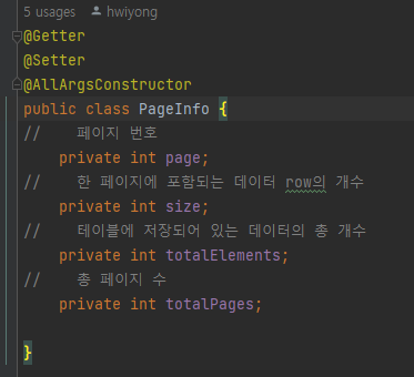 먼저 요구사항에 맞춰 PageInfo를 생성해야 합니다.