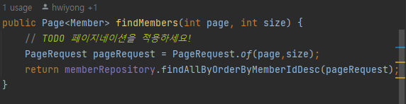 page와 size를 매개변수로 받는 PageRequest 객체를 생성하여 repository로 반환합니다.